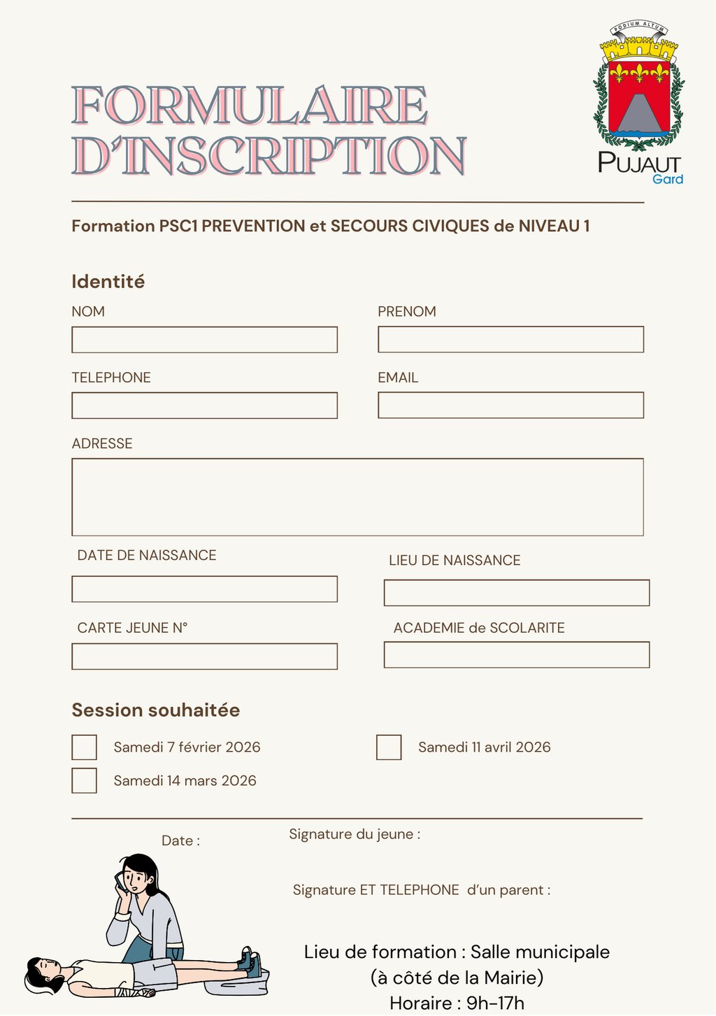 Formulaire d'inscription en PJ à compléter et renvoyer à accueil@mairiedepujaut.fr