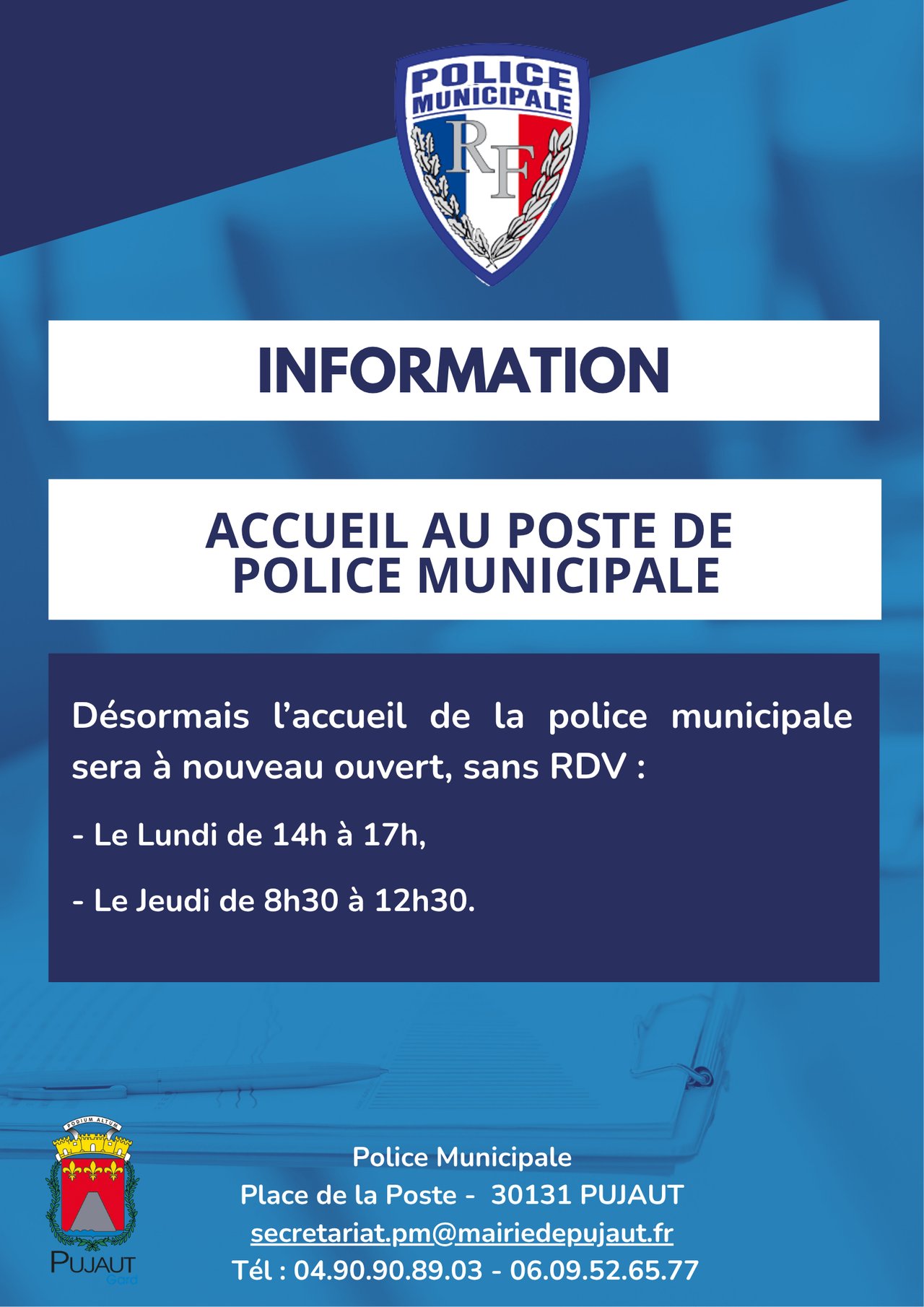 Jours d'ouverture du secrétariat de Police Municipale